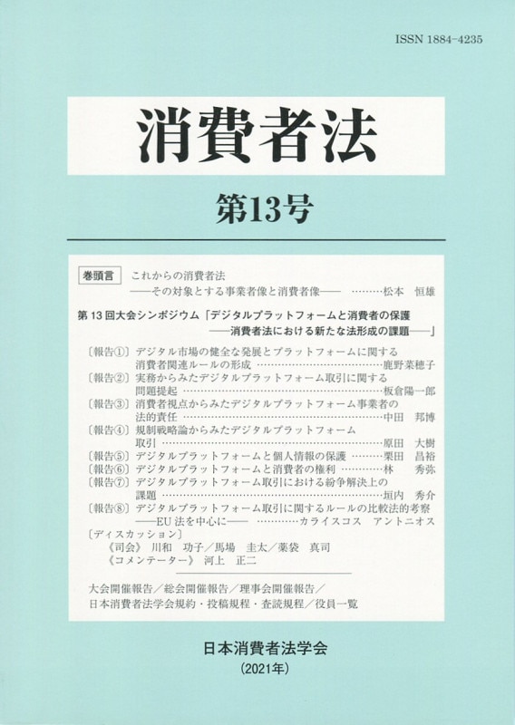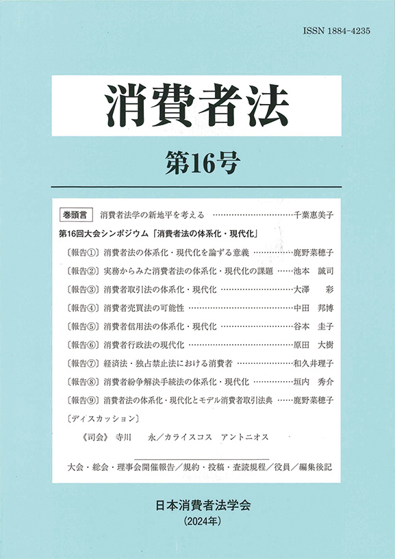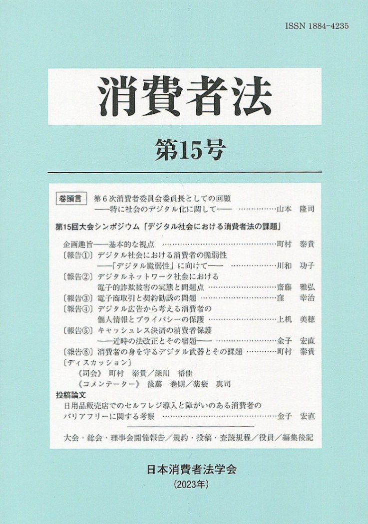 | 2023年09月15日発行 【特集】消費者法の体系化・現代化 |